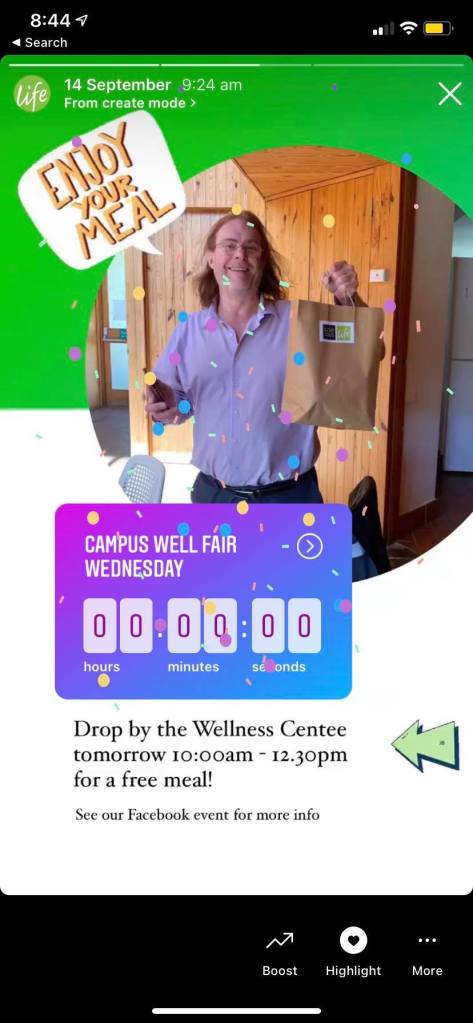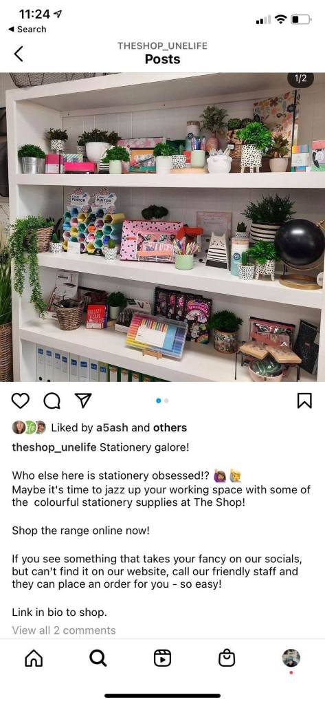 The following images are examples of the interactive stories I did for UNE Life which encouraged students to engage with the posts. Following those images are two examples of social media posts that I created for The Shop on Instagram.
